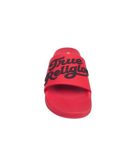 True Religion Men's Drake pool slide featuring a bold script logo across the strap and a molded footbed for cushioned comfort and effortless slip-on wear.