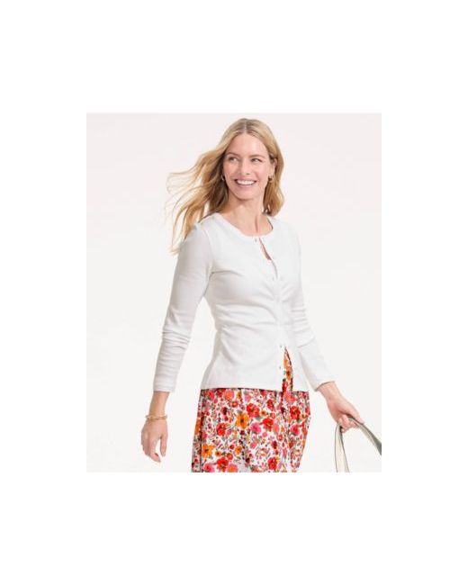 Women's White Long Sleeve Micro Rib Button Through Cardigan