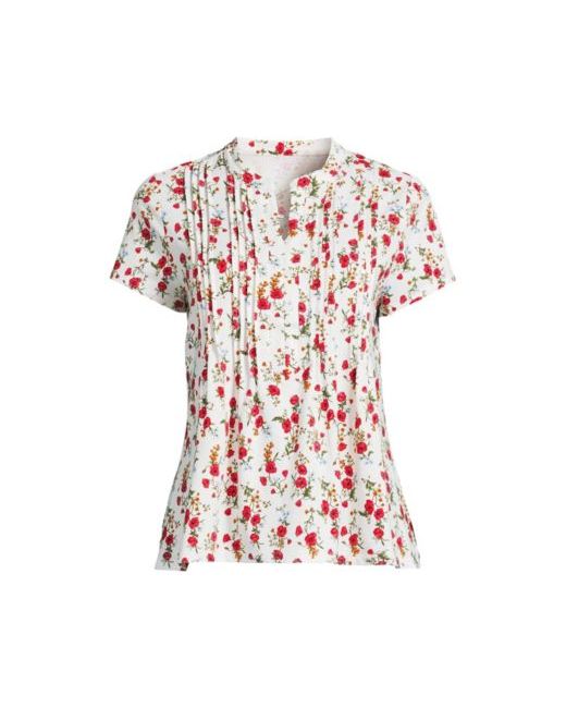 Women's Floral Lightweight Jersey Button Pintuck Top