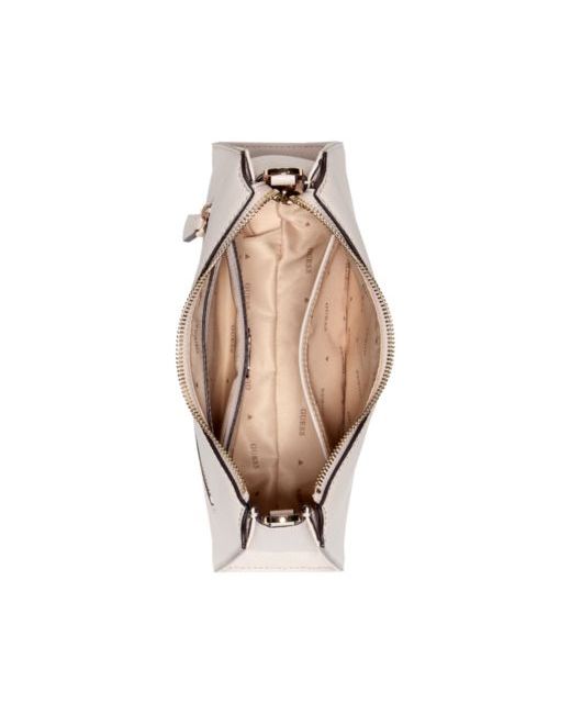 Infuse everyday elegance with this Guess Lucci shoulder bag, crafted from supple pebble Pu and accented with lustrous gold-tone hardware. Thoughtfully designed with a top and back zip, plus slip and zip pockets, it keeps your essentials neatly organized.