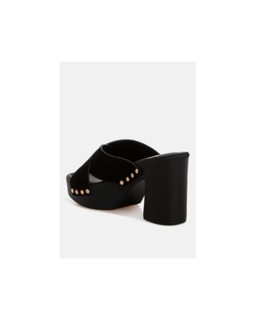 These genuine suede leather clogs feature criss-cross upper straps adorned with metallic stud embellishments for a chic vibe. The chunky wooden texture platform block heel adds dimension while the cushioned insole ensures optimum comfort. They exude a slip-on style which makes them an effortless summer-ready choice.Type: Clogs Upper Material: Genuine Suede Leather and nbsp Outer Sole: Tp Rubber Open Square Toe High Platform Block Heel Textured Heel Detail Metallic Stud Embellishments Criss Cross Straps Vamp Slip On Design Comfortable Cushion Insole Heel Height: 3.5 inches RCSH5434