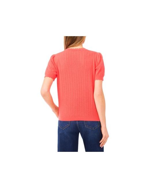 Wrap your look in soft femininity with this CeCe sweater, designed with a delicate open-knit pattern and scalloped edge trim for subtle texture and charm. Short-sleeve keep it light and comfortable, making it an easy, polished choice for everyday wear. About The Brand: CeCe is a contemporary lifestyle brand inspired by a romantic take on the everyday, punctuated by taste, wit, and on-the-go flair.
