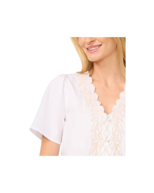 Crisp and delicately detailed, this CeCe short-sleeve blouse is highlighted with a leafy motif along the placket and hem that brings a fresh, feminine charm to any casual outfit. The button-front closure keeps the look neat and well-crafted, giving the silhouette a clean, polished finish. About The Brand: CeCe is a contemporary lifestyle brand inspired by a romantic take on the everyday, punctuated by taste, wit, and on-the-go flair.
