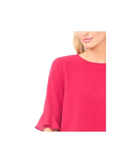 Women's Pink Ruffled-Cuff 3/4-Sleeve Crew Neck Top
