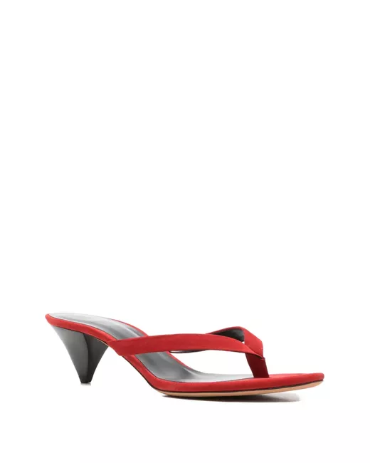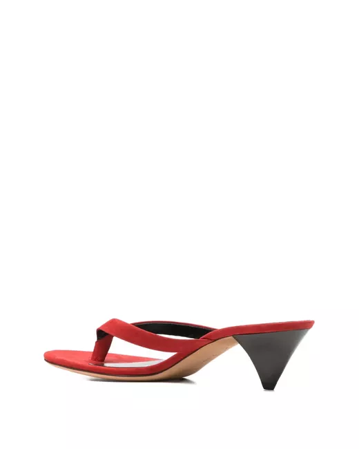 red leather nubuck finish thong strap slip-on style cone heel branded footbed footbed This piece comes complete with a protective dust bag.