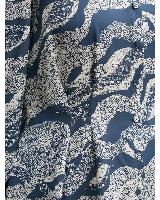 blue/beige abstract print front button fastening long sleeves buttoned cuffs mandarin collar