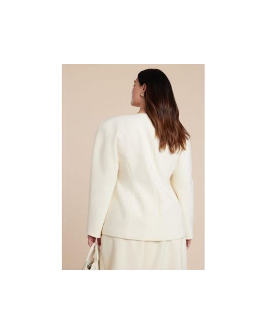 Make a confident impression in this hourglass blazer designed with sculpted lines. Tapered dolman sleeves, shoulder pads, and sleek lines deliver modern tailoring.99% Polyester 1% Spandex. Tailored fit. Fully lined. Single breasted snap closure. Long, dolman sleeve. Shoulder pads. Functional welt pockets. Hits below the hip30 1/2" from highest point of shoulder on size 18Non-stretch twill. Dry clean.
