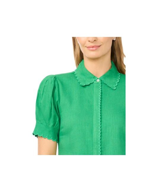 Lend a crisp update to warm-weather dressing with this CeCe collared top, styled with short-sleeve and scallop trim that adds a delicate, refined touch. A button-front closure allows adjustable styling for varied looks, while the breathable linen fabrication supports all-day comfort in elevated casual settings. About The Brand: CeCe is a contemporary lifestyle brand inspired by a romantic take on the everyday, punctuated by taste, wit, and on-the-go flair.