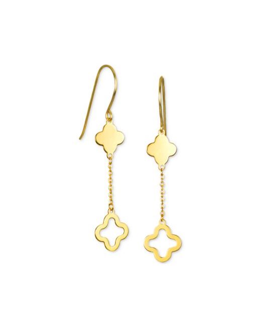 Women's Yellow Solid Silhouette Clover Chain Link Drop Earrings Alternating Station Bracelet 14k Gold
