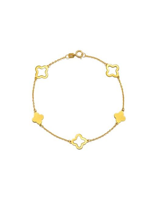 Solid Silhouette Alternating Clover Station Link Bracelet 14k Gold