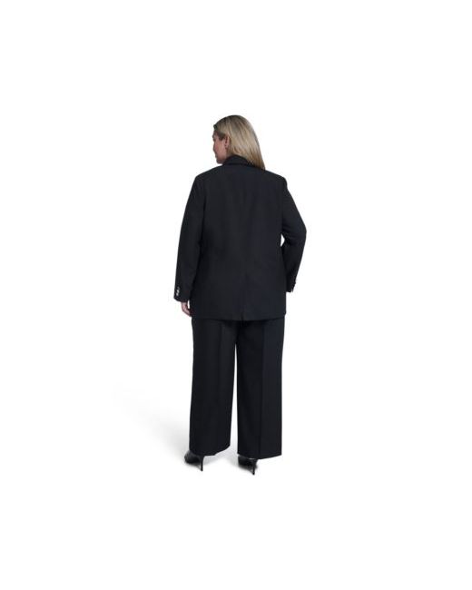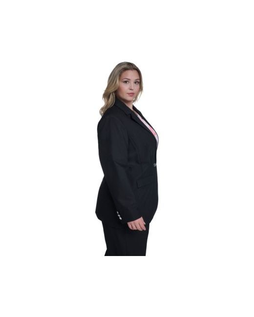 Tailored with a sleek pinstripe pattern, this one-button jacket from Calvin Klein offers a notch collar and long sleeves. Multiple front pockets provide both style and utility.