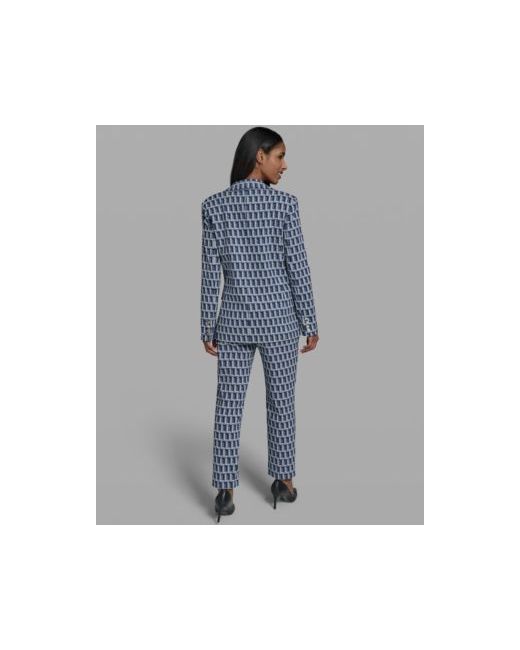 Modern office refinement unfolds through this Karl Lagerfeld Paris patterned jacket, highlighted by a striking geometric motif that introduces contemporary personality. Long-sleeve encourage comfortable mobility while light shoulder padding reinforces tailored structure. A single-button-front enables quick fastening, as three hip pockets improve practicality, and A-lined interior assists smooth layering.
