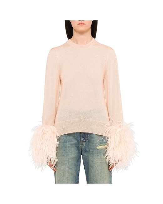 Description: – Composition: 100% wool – Long sleeves – Feathers detaill – Round neck – Model is 1.80m wearing size S – Made in Italy –