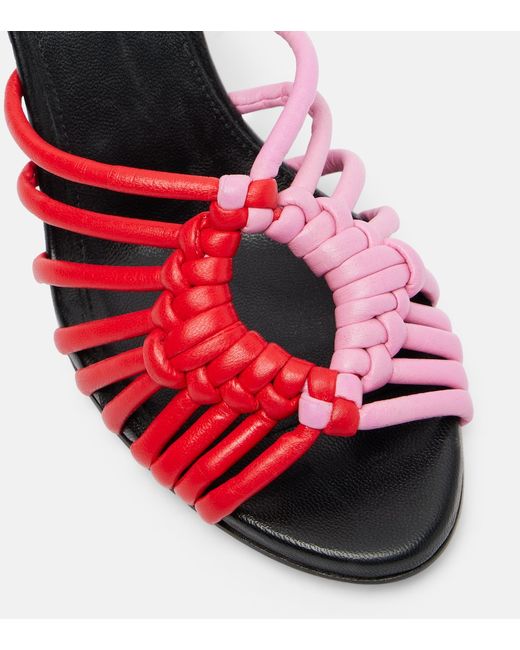 Upper: sheep leather. Lining: sheep leather. Sole: leather insole, rubber sole. Toe shape: round open toe. Made in Italy. Includes: shoe box. Designer color name: Red/Bubblegum.