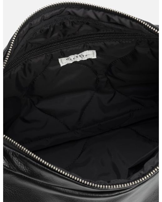 ClessteLeather Holiday BagMade of cowhideEarphone pocket with magnetic closureCarabiner attachedInterior pocketsInterior pocket with zipperAdjustable shoulder strapNylon twill quilting liningMade in JapanColor: Black