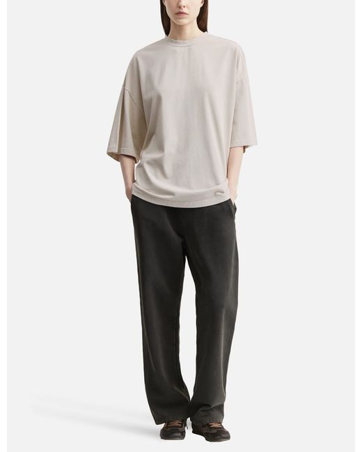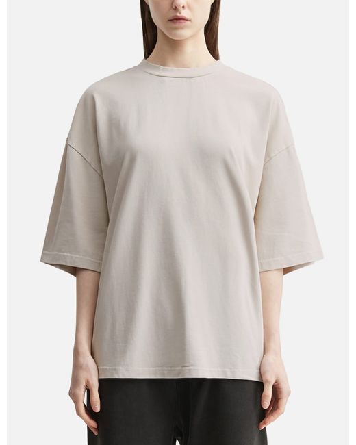 Entire StudioHeavy Boxy TeeUnisexMade of 310 gsm heavyweight organic cotton rugby knit jerseyGarment dyed and enzyme washedOversized fitRibbed crewneckShort sleevesDropped shoulderSlight variation in exact colour on each pieceColor: Off White