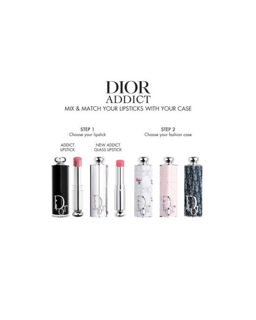 Personalize your Dior Addict shine lipstick with one of three limited-edition cases inspired by Dior's couture motifs. This seasonal collection features designs inspired by iconic Dior patterns, including Dior Oblique, Flowery Cannage, and Pink Bow Cannage, offering a stylish way to refresh your lipstick accessories.