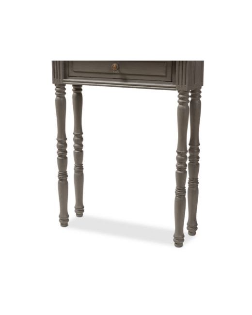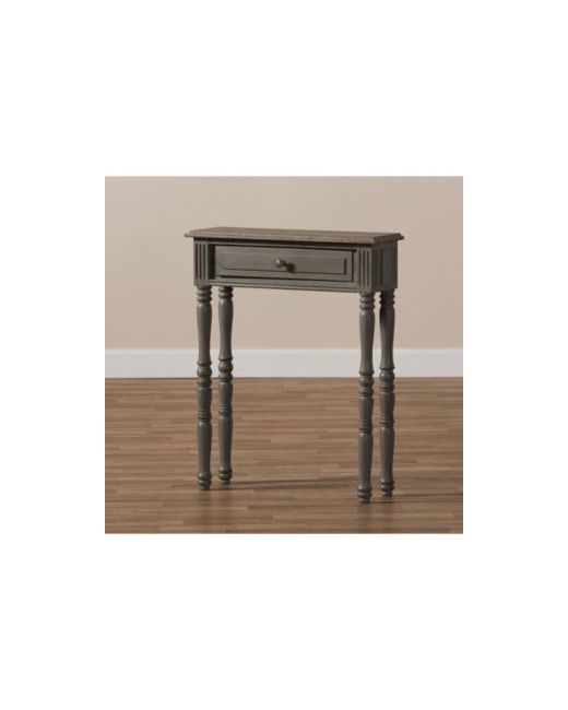 Add an element of vintage-inspired design to your space with this one-drawer console table. Antique-inspired details, including bronze-tone hardware and turned-style legs, enhance the charming traditional style of this piece.