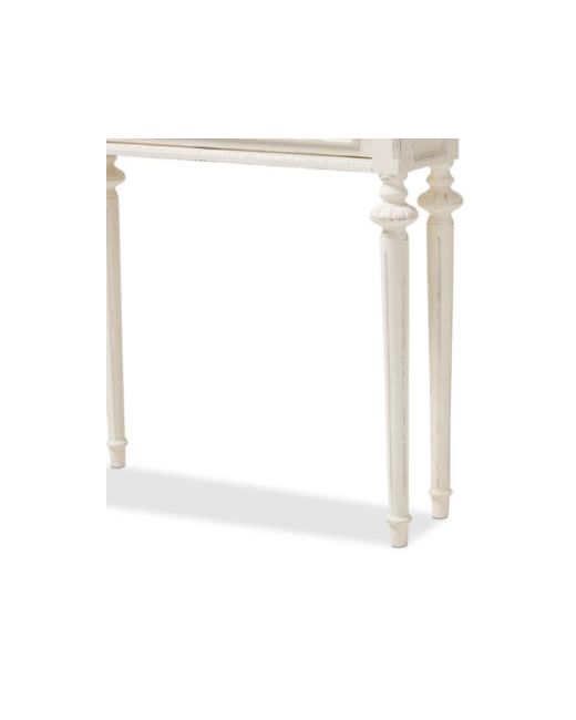 The carved fluted legs, framed drawer fronts and contrasting tones of this splendid console table offer all the charm of French provincial style for your space in a stunning way. A distressed two-tone finish adds to its beauty by lending it an appealing, aged look.