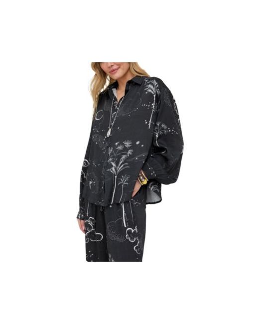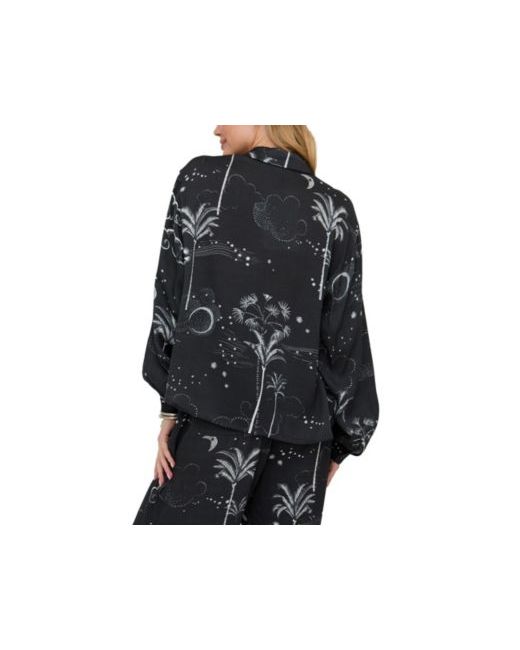 The Palm shirt blends relaxed tailoring with a bold, tropical-inspired print. Cut in an easy button-down silhouette, it features an all-over palm design on a classic black base - effortless worn solo or styled as part of a coordinated look. Pair with the matching Palm trouser for head-to-toe impact.