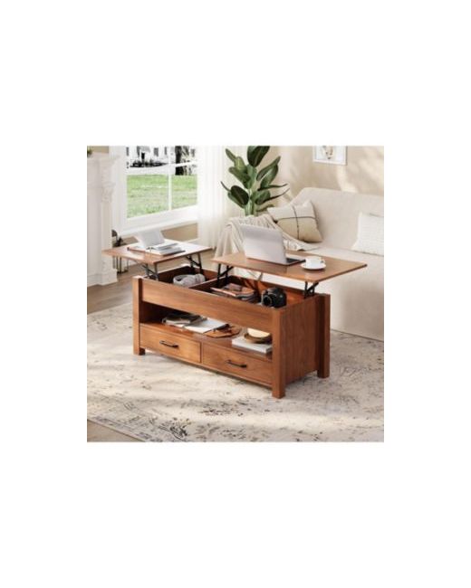 Upgrade your living room with this 47.2-inch lift top coffee table, designed for both convenience and smart storage. Featuring a unique split dual lift-top design, this center table creates two separate adjustable workspaces-perfect for working, dining, or relaxing from the comfort of your sofa. The flexible layout allows you to install the larger lift-top on either side to match your seating arrangement.This coffee table offers generous storage with two hidden compartments beneath the lift-tops and two spacious drawers. Keep laptops, remotes, books, and everyday essentials neatly organized while maintaining a clean, clutter-free tabletop.Built with a sturdy wood frame and equipped with a smooth, silent metal gas lift mechanism, this table ensures stable and effortless lifting for long-term durability. The adjustable height feature allows you to work or dine comfortably without leaning forward, enhancing everyday comfort.