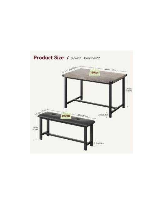 Sturdy and Durable Upgraded Frame: This small kitchen table set with a metal strong frame, which offers a longer service life and excellent stability. With the premium Mdf Board top, the overall durabilCOMPACT And Useful: The dining benches can be neatly stored underneath for space-saving convenience. It is an excellent solution for small spaces, such as condos, kitchens, studios, or apartments. TabCOZY Upholstered Benches: Made of premium Mdf board and solid steel, which features a sturdy frame for a long lifespan. Using metal pipes with a larger diameter makes the bench more stable and comfort