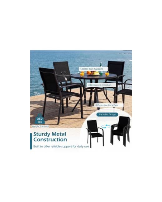 Upgrade your outdoor space with this 5-piece dining set, featuring a sleek square table and four stack able chairs for added convenience. Designed for patios, decks, and garden areas, this set offers a perfect balance of style and functionality for everyday dining or entertaining. The spacious tabletop provides ample room for meals, drinks, and decor, while the chairs are designed for comfort and easy storage, allowing you to stack and store them when not in use. Crafted from durable, weather-resistant materials, this set is built to withstand outdoor conditions while requiring minimal maintenance. Ideal for both small and large spaces, this outdoor dining set delivers comfort, practicality, and a clean, modern look.