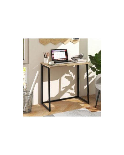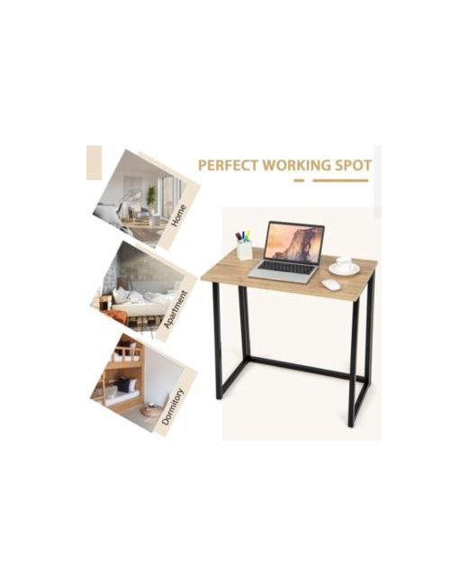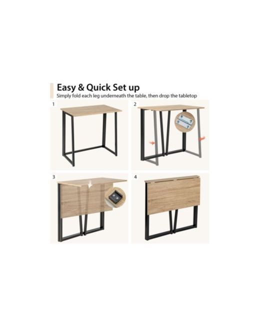 Create a practical workspace anywhere with this 31 in. space-saving folding computer desk, designed for easy daily use and quick storage. The 31 in. x 18 in. desktop provides room for a laptop, notebooks, and essentials, while the sturdy Mdf top and powder-coated metal frame help keep the desk stable during working, studying, or reading. When you re done, it folds down to a slim 3.5 in. profile for convenient storage under a bed, behind a sofa, or in a closet. Non-slip foot pads help protect floors, and the desk arrives ready to use with no assembly required.
