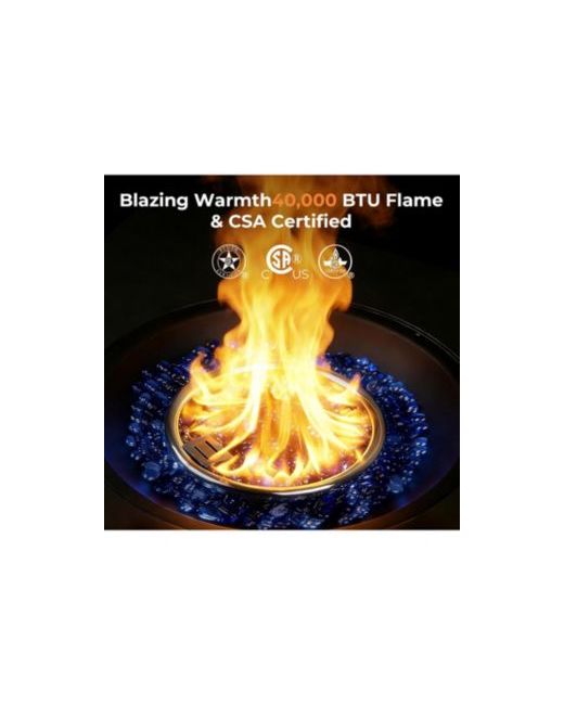 This versatile 2-in-1 propane fire pit table is designed for effortless outdoor comfort and entertaining. Setup takes just minutes with no tools required, featuring a preassembled burner, electronic ignition, and a complete accessory kit including glass stones and a weather cover. Delivering up to 40,000 Btu of adjustable, smokeless heat, it comfortably warms 4–6 people while creating a cozy ambiance. The durable steel construction with a stainless steel burner ensures long-lasting performance, while Csa certification and automatic shutoff provide added safety. Compact and portable, it s ideal for patios, backyards, and outdoor gatherings.