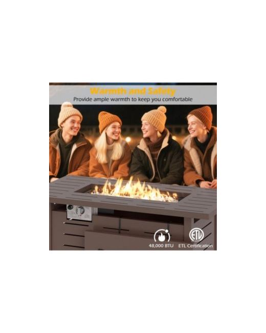 Brown 40 Rectangle Propane Fire Pit Table 48000 Btu with Lava Rocks and Cover