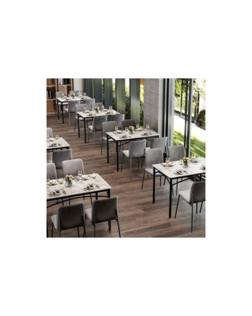 Elevate your dining experience with this modern table featuring a premium sintered stone tabletop, known for its heat resistance and scratch durability. Supported by a solid metal frame, it offers exceptional stability. Perfect for various settings, this table combines style and functionality, comfortably seating 2-4 people with easy assembly.