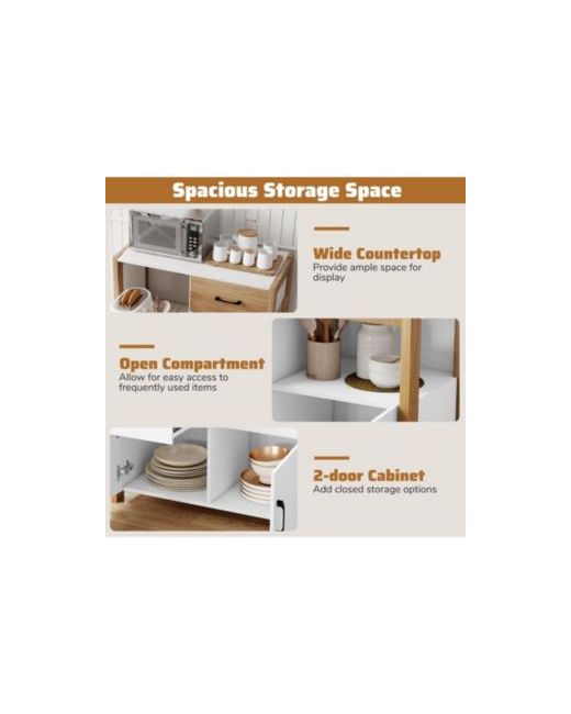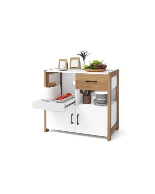 Bring polished storage to busy rooms with this versatile cabinet, designed to keep serveware, small appliances and everyday essentials neatly arranged. A roomy top, drawer, open cubby and enclosed shelves help reduce clutter, while the wood-look finish and clean lines add warm, modern style to your space.