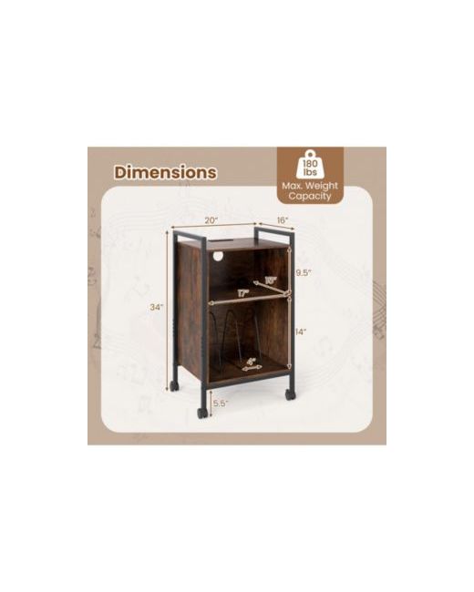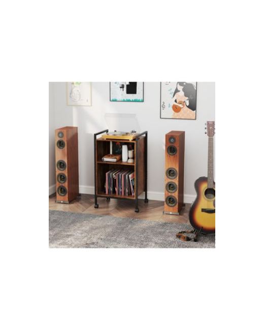 Elevate your music experience with this versatile turntable stand. Featuring a recessed power strip for device charging, ample vinyl storage, and a sturdy metal frame, it combines functionality with style. Lockable wheels ensure easy mobility, while its industrial design adds charm to any room, making it a perfect addition to your living space.