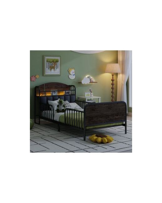 This bed frame combines bedroom style with practical everyday function. Features upholstered design, platform design, storage shelf, and Led lights. Built for reliable support and easy daily use.