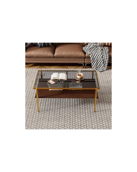 This Rectangle 2-Tier Coffee Table features a stylish gray tempered glass top and a sturdy wooden storage shelf. With a clean, modern design and practical 2-tier structure, it is an ideal center table for living rooms and small spaces.