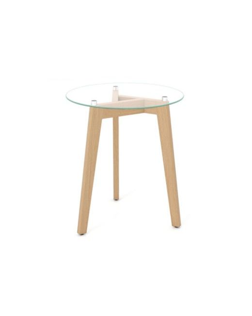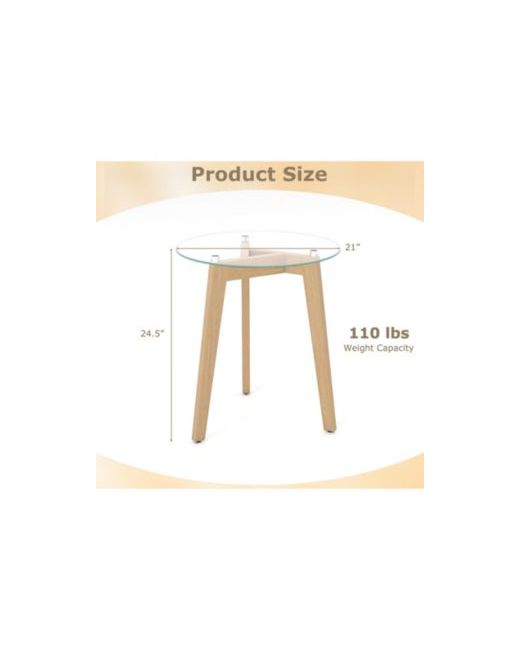 Refresh your space with this round tempered glass end table, designed to add a light, modern touch while keeping everyday essentials close. The clear glass top creates an open look that pairs easily with contemporary decor, while the solid rubber wood frame provides steady support for items like a lamp, drink, or small decor. With its versatile size, this accent table works well as a sofa side table, bedside table, or a compact guest room companion. The smooth tabletop wipes clean easily, and the simple structure is designed for straightforward assembly.