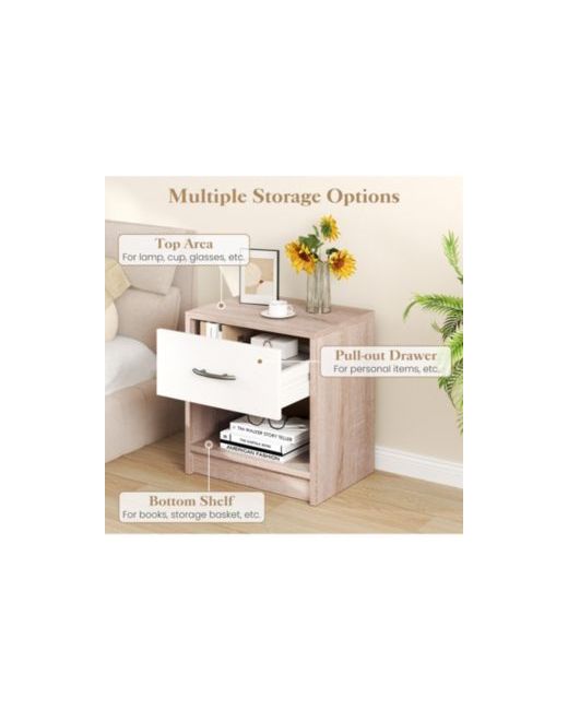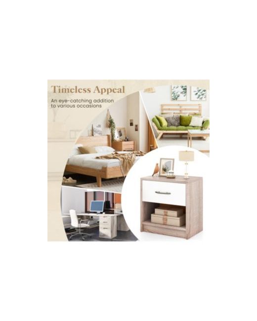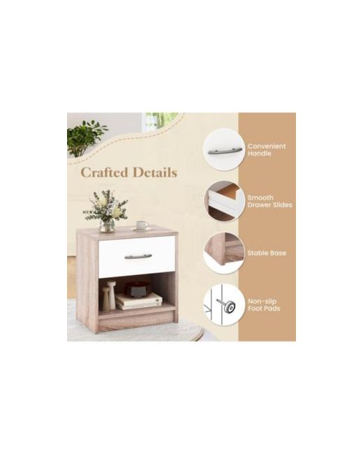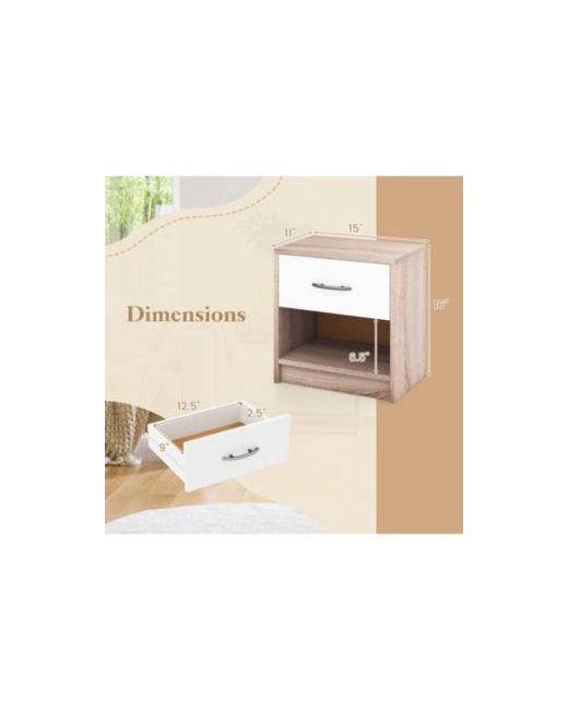 Streamlined at just 15 in x 11 in, this compact bedside table delivers essential storage without overwhelming small bedrooms or tight spaces. A smooth-sliding drawer keeps personal items private, while the open shelf below provides quick-access display space for books, magazines, or decorative objects. Anti-slip foot pads protect floor surfaces and prevent shifting during daily use. The lightweight 13 lb design makes repositioning effortless for seasonal room rearrangements.
