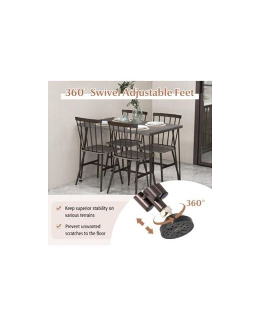 Bring a full dining experience into a compact footprint with this 5-piece set sized at 44 by 28 inches. Four chairs with curved backrests cradle the lower back during long meals, and each seat tucks beneath the table to open walkways. Oversized 360-degree swivel feet self-level on uneven floors, while anti-slip pads protect tile or hardwood from scuffs.