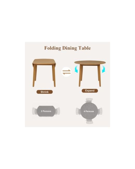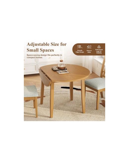 Extendable Round Dining Table with Folding Drop Leaves Space-Saving Wooden for 2-4 Persons Rooms and Kitchens