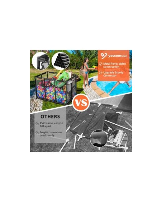 Specifications:- Pool Storage Bin- Overall Dimension(LxWxH) 64 15/16" x 30 5/16" x 33 1/4" (165 x 77 x 84.5 cm)- Max. Weight Capacity 63.5 Lbs (28.8 kg)- Net Weight 14.3 Lbs (6.5 kg)- Mesh Cover- Overall Dimension(LxWxH) 60 5/8" x 28 3/4" x 28 3/4" (154 x 73 x 73 cm)- Net Weight 0.99 Lb (0.45 kg). Package Contents:- 2x Mesh Nets- 12x Wheels- 12x A Tubes- 3x B Tubes- 16x C Tubes- 8x D Tubes- 8x Corner Tube Connectors- 10x T-Shape Tube Connectors- 6x 4-way Tube Connectors- 1x Wrench- 2x Manuals