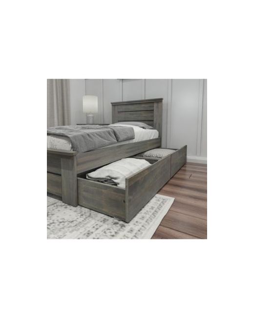 Bring the fun of the farm in with the Modern Farmhouse Twin Bed with Panel Headboard and Storage Drawers from Max and Lily. With a fabulous barnwood finish and enhanced safety, this bed offers the perfect combination of fun and functional that kids and parents love. Added panel headboard creates a stylish look. Coordinating storage drawers make organizing simple. The durable, low-voc finish makes this bed a safe choice for any kids room. Sleep and storytimes feel secure thanks to a 400 lb resting weight capacity for each sleeping surface. Solid New Zealand pine wood construction, solid plywood slats and metal support bar provide strong, durable support. Works with standard twin-size mattresses and does not require box springs or bunkie boards. Super safe design meets or exceeds Federal safety standards for kids furniture. Ships in two boxes with instructions and hardware included. 2+ adults make assembly quick and easy.