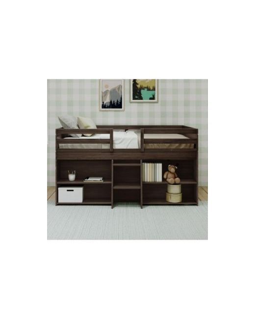 The Max and Lily Modern Farmhouse Low Loft Bed with 2 Bookcases is the perfect combination of fun and functional. The solid wood bed frame adds strength and stability. Included four shelves organize and display your favorite items. The large underbed space is perfect for play or storing larger items. At only 41.5 inches tall, this space-saving loft bed is great for smaller rooms and younger children. This kids loft bed features tall, 15-inch guardrails, so the low loft bed safely fits standard mattress sizes up to 8 inches thick. Angled ladder with rounded edges offers comfortable, easy climbing. Added bonus - ladder, storage and play area can be installed on either side of the twin loft bed during assembly. This loft bed for kids uses a durable finish that s ideal for your clean and healthy home. Finish features a unique barnwood look that pairs perfectly with your existing kids room furniture and other modern farmhouse pieces. Variations in color and coating may occur.