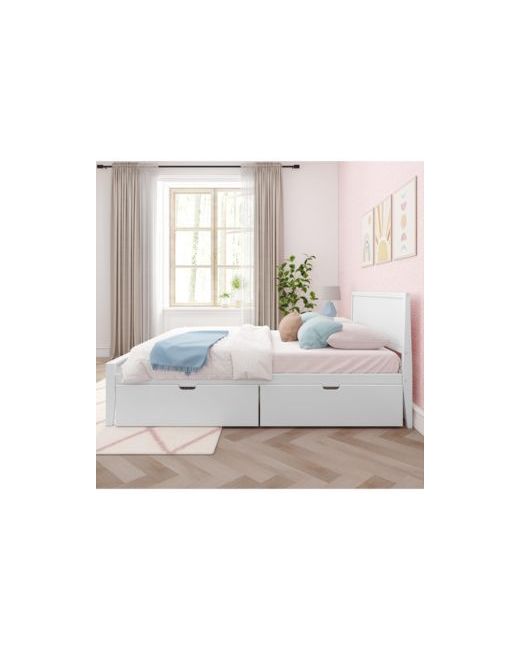 Bring the best of fun and functional design to your kids bedroom with the Max and Lily Queen-Size Bed with Panel Headboard and Storage Drawers. The knot-free, solid wood queen bed frame adds strength and stability. This kids queen bed uses a durable finish that s ideal for your clean and healthy home. The panel headboard provides the perfect back support when reading or watching Tv in bed. This modern queen bed features flush, color-matched hardware for a clean, contemporary look. With strong plywood slats and a metal support bar, this queen bed can support 400 lbs. of resting weight - no box spring or Bunkie board required. The wood storage drawers provide space to store and organize everyday items. Each storage drawer can be individually placed underneath the queen bed to open up more space. A wooden drawer guide keeps the drawers in line as they roll. This queen bed frame with headboard includes easy-to-read instructions, tools, and hardware for a quick setup.