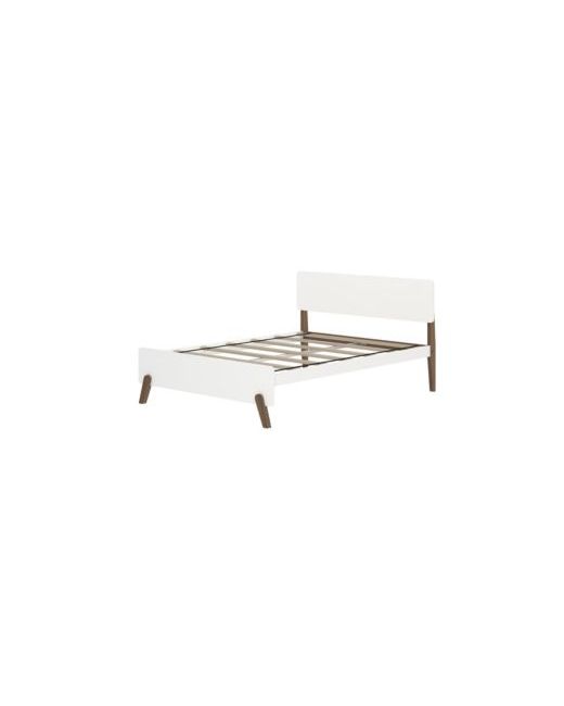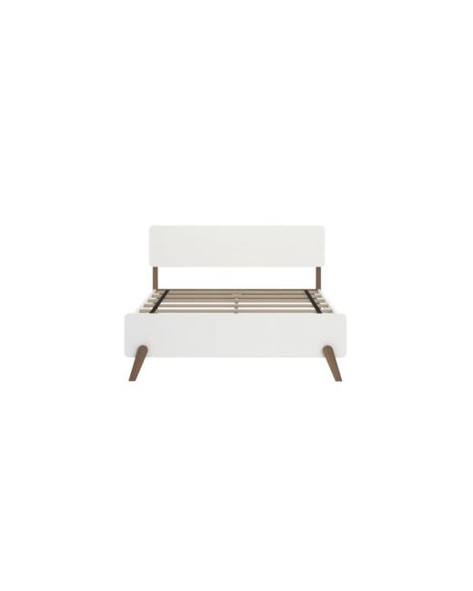 White Bed Frame Mid-Century Modern Solid Platform for Kids Strong Slat Support No Box Spring Needed