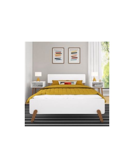 Give your kids bedroom a modern look with the Max and Lily Mid-Century Modern Full-Size Panel Bed. The knot-free, solid wood bed frame adds strength and stability. This solid wood full size bed for kids features a two-tone look with solid wood and melamine accents that showcases the natural beauty of wood with a fresh finish. This modern bed for kids safety fits standard full mattress sizes and all mattress types, including memory foam, spring, hybrid, and latex. The panel headboard, curved edges, and flush, color-matched hardware gives this kids bed a clean, modern look. With solid pine wood slats and a metal under-bed support bar, this bed can support 400 lbs. of resting weight - no box spring needed. Includes easy-to-read instructions, tools, and hardware for a quick setup. This solid wood bed meets or exceeds federal safety standards for kids furniture. The bed ships in one box and is heavy due to its solid wood construction.