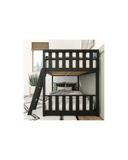 Black Max and Lily Solid Scandinavian over Bunk Bed for Kids with Ladder