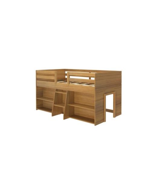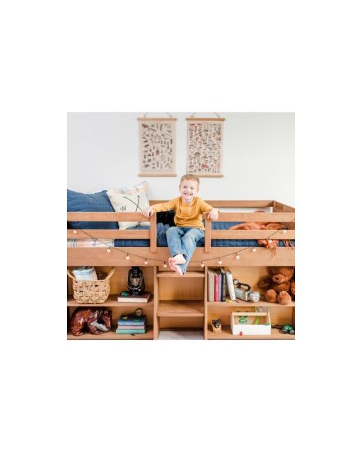 The Max and Lily Modern Farmhouse Low Loft Bed with 2 Bookcases is the perfect combination of fun and functional. The solid wood bed frame adds strength and stability. Included four shelves organize and display your favorite items. The large underbed space is perfect for play or storing larger items. At only 41.5 inches tall, this space-saving loft bed is great for smaller rooms and younger children. This kids loft bed features tall, 15-inch guardrails, so the low loft bed safely fits standard mattress sizes up to 8 inches thick. Angled ladder with rounded edges offers comfortable, easy climbing. Added bonus - ladder, storage and play area can be installed on either side of the twin loft bed during assembly. This loft bed for kids uses a durable finish that s ideal for your clean and healthy home. Finish features a unique barnwood look that pairs perfectly with your existing kids room furniture and other modern farmhouse pieces. Variations in color and coating may occur.
