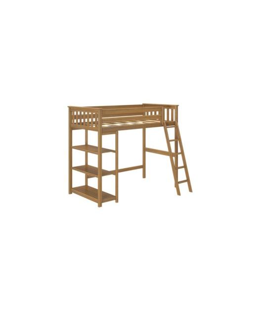Experience the perfect blend of fun and practicality with the Max and Lily Full Size High Loft Bed with a ladder. Crafted from knot-free solid wood, this wooden loft bed offers superior strength and stability. Enhance your child's room with this space saving high loft bed that features a space-saving end ladder, granting both easy access to under-bed storage and an efficient room layout. The low Voc finishes ensure a clean and healthy sleeping environment, promoting your child's well-being. With a remarkable weight capacity of up to 400 lbs., this durable loft bed guarantees sturdy and secure support. The inclusion of strong plywood slats, a metal support bar, and metal-on-metal bolt connections further contribute to its exceptional durability. A 3-shelf bookcase provides room to organize everyday items.