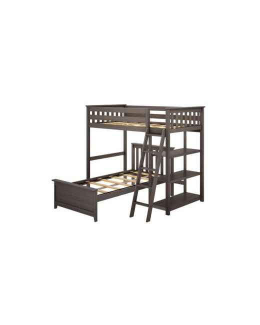 Plenty of room for sleep, study and play? Now that s a win-win! The Max and Lily Twin Over Twin L-Shape Bunk Bed with Bookcase is the perfect combination of functional and fun. Top bunk features tall 14" guardrails for extra sleep security up high. For best fit and safety, we recommend using a 5-inch mattress, and not exceeding an 8-inch mattress. Lower bed is not attached to the top bed and can be moved independently. Practical storage shelves give you the space to organize all your toys, books and school essentials. Angled ladder with wide anti-slip steps offers comfortable, easy climbing. Added bonus - ladder and shelves are both reversible upon assembly, so they fit great in any space. All Max and Lily products use a durable finish. The slatted head and footboards and flush, color-matched hardware give this bunk bed a clean, modern look. Instructions, upper/lower slat rolls, and required hardware are included.