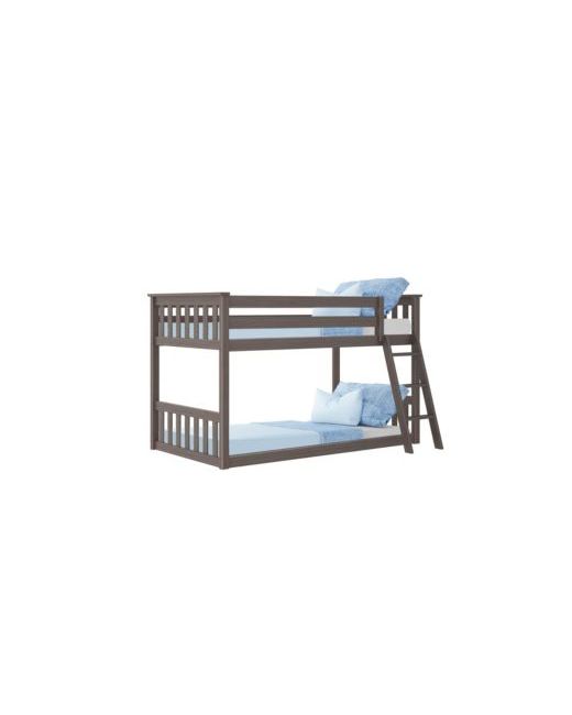 Introducing the Max and Lily Twin Over Twin Low Bunk Bed - where functionality meets style. Built with knot-free, solid pine wood, this low bunk bed effortlessly balances fun and durability. The low-profile design, standing at only 50 inches high, is perfect for compact spaces and younger children, with the bottom bunk just two inches off the floor for added safety. Safety is paramount - the top bunk features tall 14-inch guardrails. This bunk bed is compatible with standard twin size mattresses between 5 and 8 inches thick. No box spring or bunkie board is required for this bed. The angled ladder with rounded edges offers easy, secure access and can be installed on either side of the bunk to suit your room layout. The bed's sleek, modern look is accentuated by flush, color-matched hardware and slatted headboards and footboards. The low-voc finish promotes a clean and healthy sleep environment.